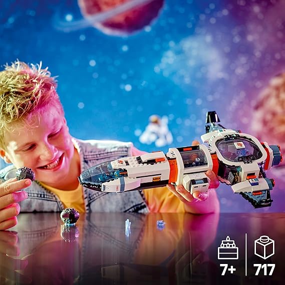 - What’s in the box – Includes everything kids need to build a modular spaceship, 2 toy meteorites, 4 space crew minifigures, plus an alien figure and a driller robot figure
