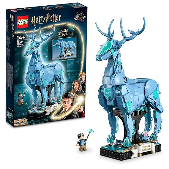 - 2-in-1 LEGO Harry Potter Expecto Patronum build-and-display set (76414) – Choose whether to build either Harry Potter’s stag Patronus or Professor Remus Lupin’s wolf Patronus