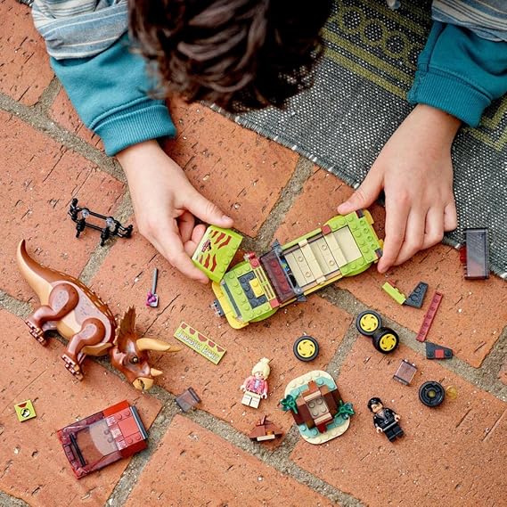 - Playset for children who love dinosaurs and toy vehicles – Play out a memorable Jurassic Park scene with this Triceratops Research (76959) set, featuring a buildable Ford Explorer and dinosaur poop