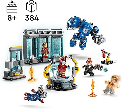 - LEGO Marvel building set for young Super Heroes – Iron Man’s Laboratory: Hall of Armour is a fun buildable Avengers toy for 8+ year old boys and girls