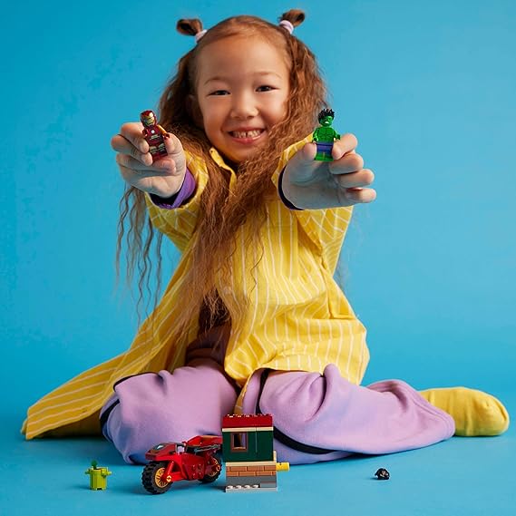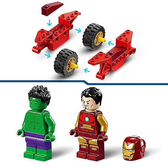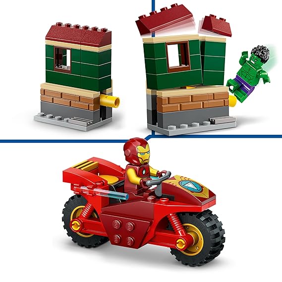 - Iron Man and Incredible Hulk buildable toy – This build-and-play LEGO Marvel Iron Man with Bike and The Hulk playset for kids is especially designed for boys and girls aged 4 and over