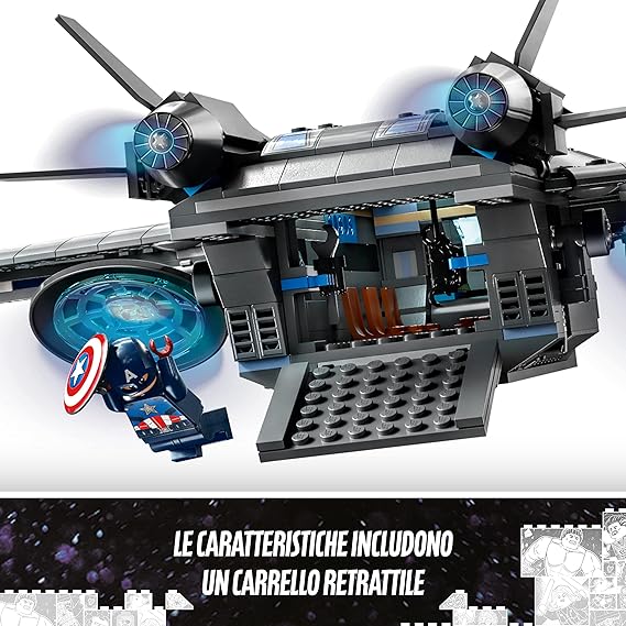- Build, play and display – This detailed recreation of the famous Quinjet aircraft has an opening cockpit, passenger area and rear section, plus a retractable undercarriage and adjustable wings