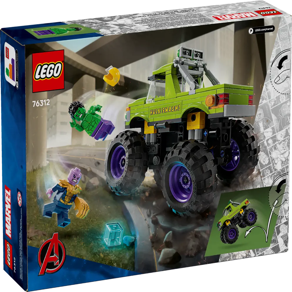 The Hulk Truck vs. Thanos (76312) is a buildable LEGO® ǀ Marvel playset featuring Hulk’s heavy-duty truck and 2 Super Hero minifigures. This high-quality gift for boys and girls aged 7 and up is great for kids who are fans of the Marvel Avengers movies, big trucks and build-and-play LEGO set adventures.
