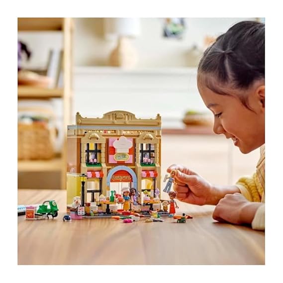 - Pretend play for creative chefs – This Restaurant and Cooking School role-play toy for kids aged 8 and up comes with lots of toy food pieces, 4 minidolls, a cat figure and a scooter toy