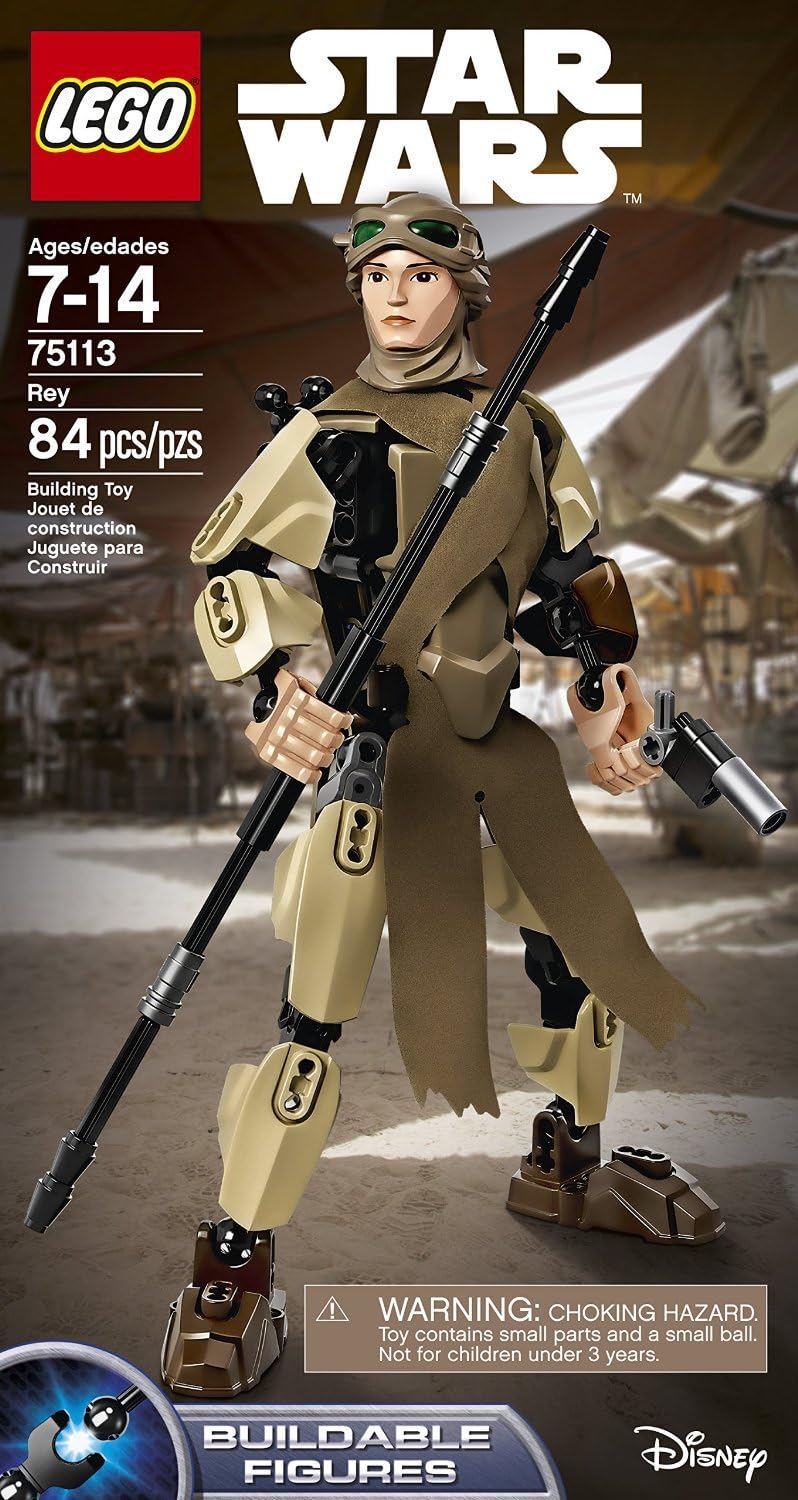 - Buildable and highly posable Rey figure features a real-cloth desert outfit, staff, pistol and a wheel-activated arm-swinging battle function