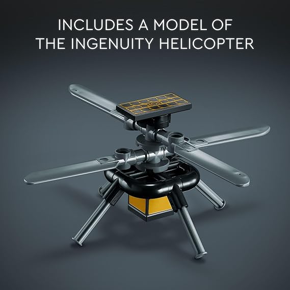 - Conduct a test flight – This set includes a buildable toy version of NASA’s Ingenuity helicopter, which accompanied the Perseverance Rover and was used to test powered flight on Mars