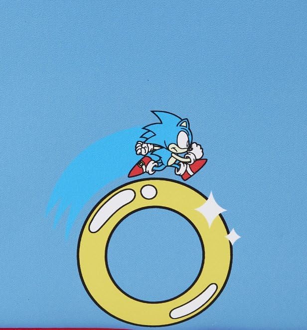 - ICONIC DESIGN: Celebrate the Blue Blur with the Loungefly Sonic the Hedgehog Classic Cosplay Mini Backpack, showcasing Sonic's mischievous face, gloved hands, and vibrant print of him chasing rings and Chaos Emeralds.
