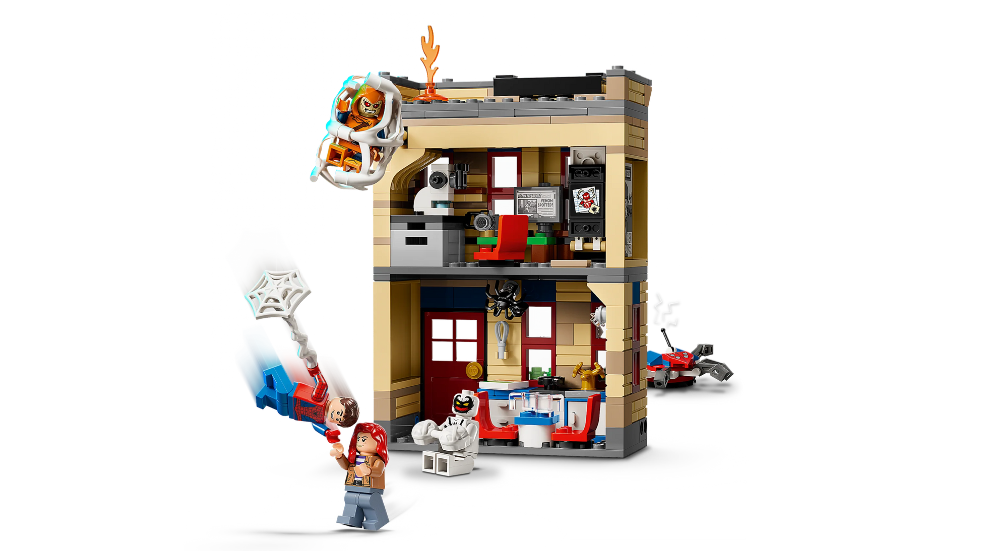 Kids role-play explosive, web-slinging action at Peter Parker’s apartment with Spider-Man, Mary Jane, Hobgoblin and Anti-Venom minifigures.