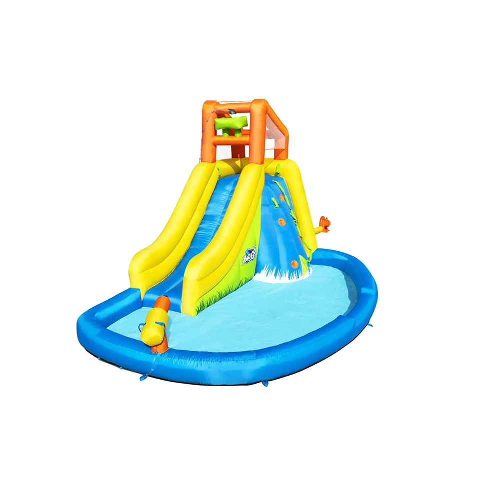 - Built-in extra-large play pool area and Built-in water dispenser provides random soaks and keeps slide slippery