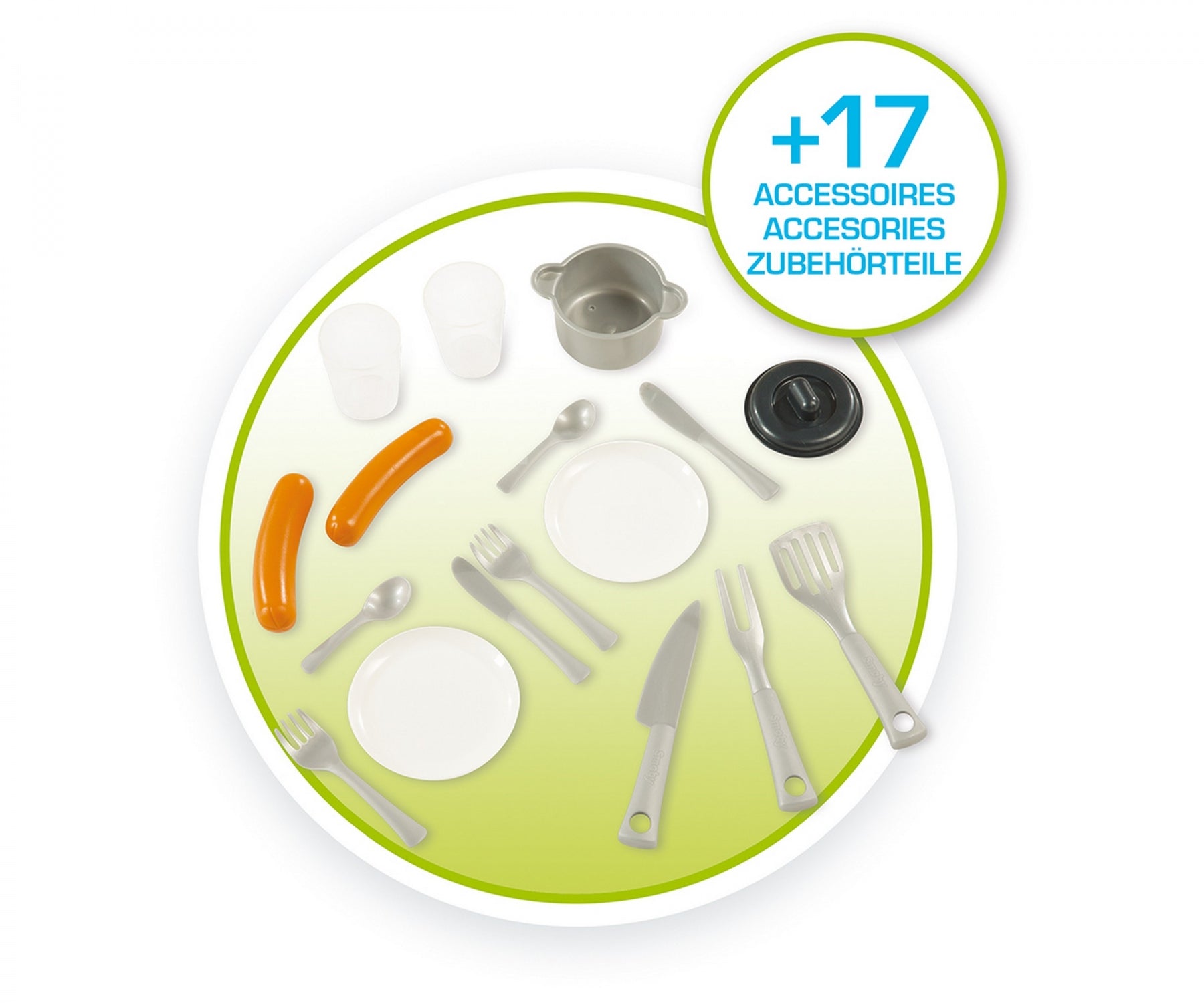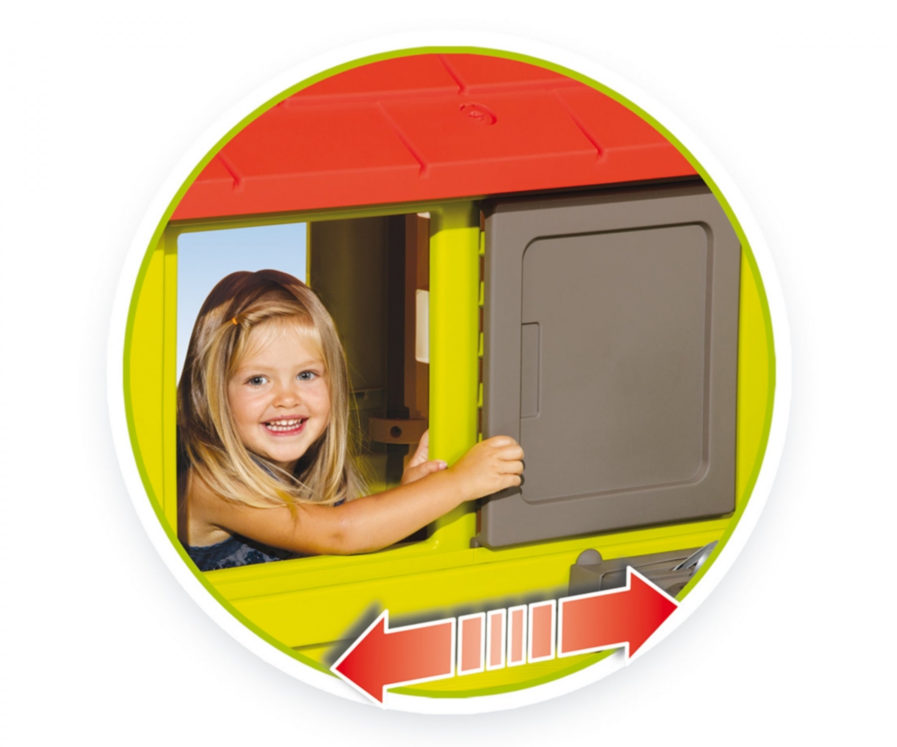 Complete and designer, the "Nature Playhouse + Kitchen" gives your children a large surface to play with friends! Your children will be able to imagine easily themselve in the Nature playhouse with its kitchen! With their friends, they will imitate your moves! They will cook tasty dishes thanks to the "grill" and its many accessories: sausages, glasses, plates, cutlery, ... Everything to spend good sunny days! The playhouse is very bright thanks to its 2 windows, but if your little ones want to have shade, they will just have to slide the shutters! Practical and sturdy, your playhouse will be used several years as a play area thanks to its anti-UV treatment and its resistant materials!