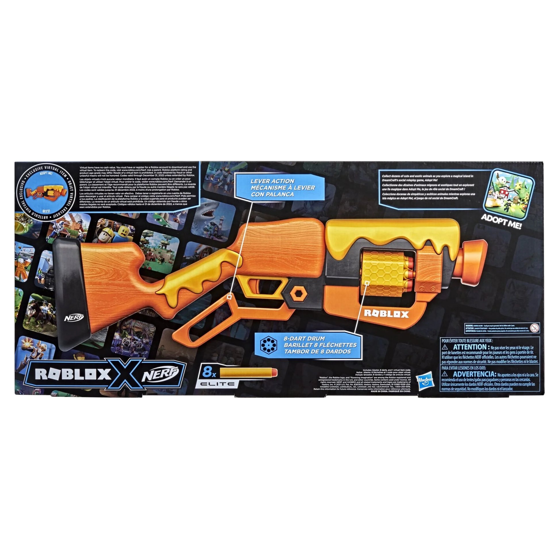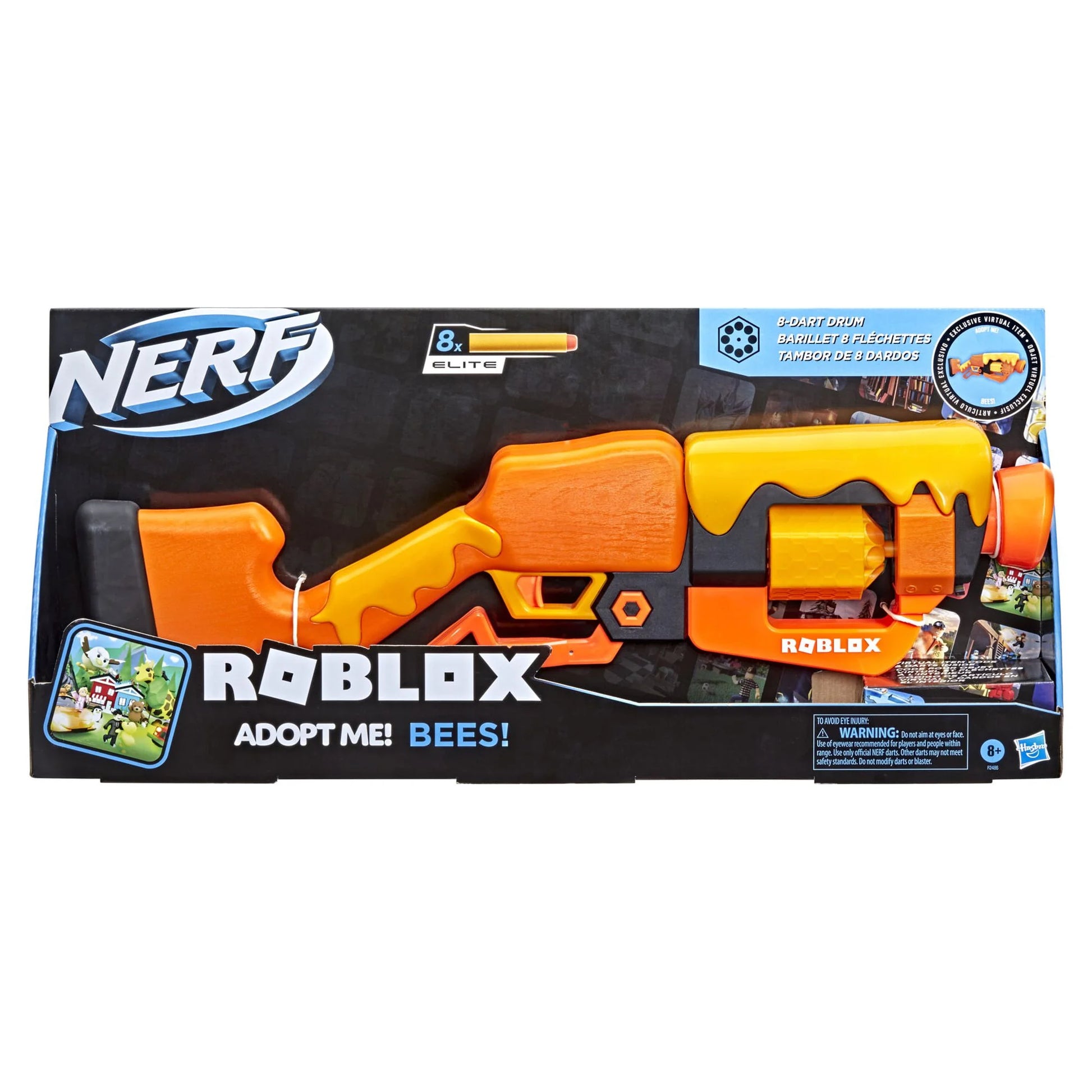 - NERF ROBLOX ADOPT ME!: BEES! DART BLASTER: This dart-firing blaster takes its inspiration from ones used in the Roblox game Adopt Me!