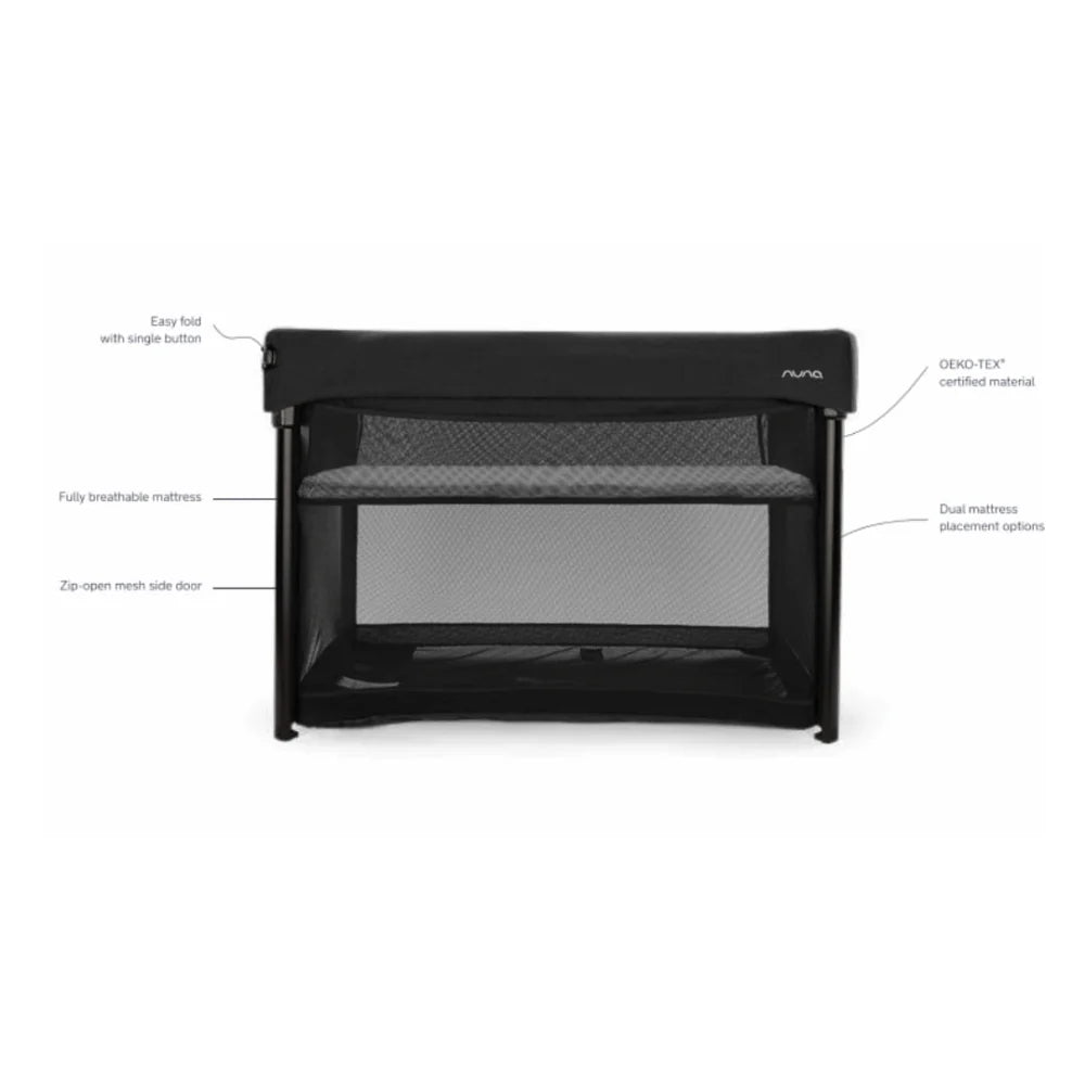 - Premium Details:- Contemporary design and premium fashion options ensure baby's space will complement yours Single button for an easy fold even with the bassinet attached Zip-open side panel for crawl-friendly fun and face-to-face interaction with baby Lightweight and comes built for travel with a convenient travel bag with duffle handles Includes an insect net for protection from all things with wings