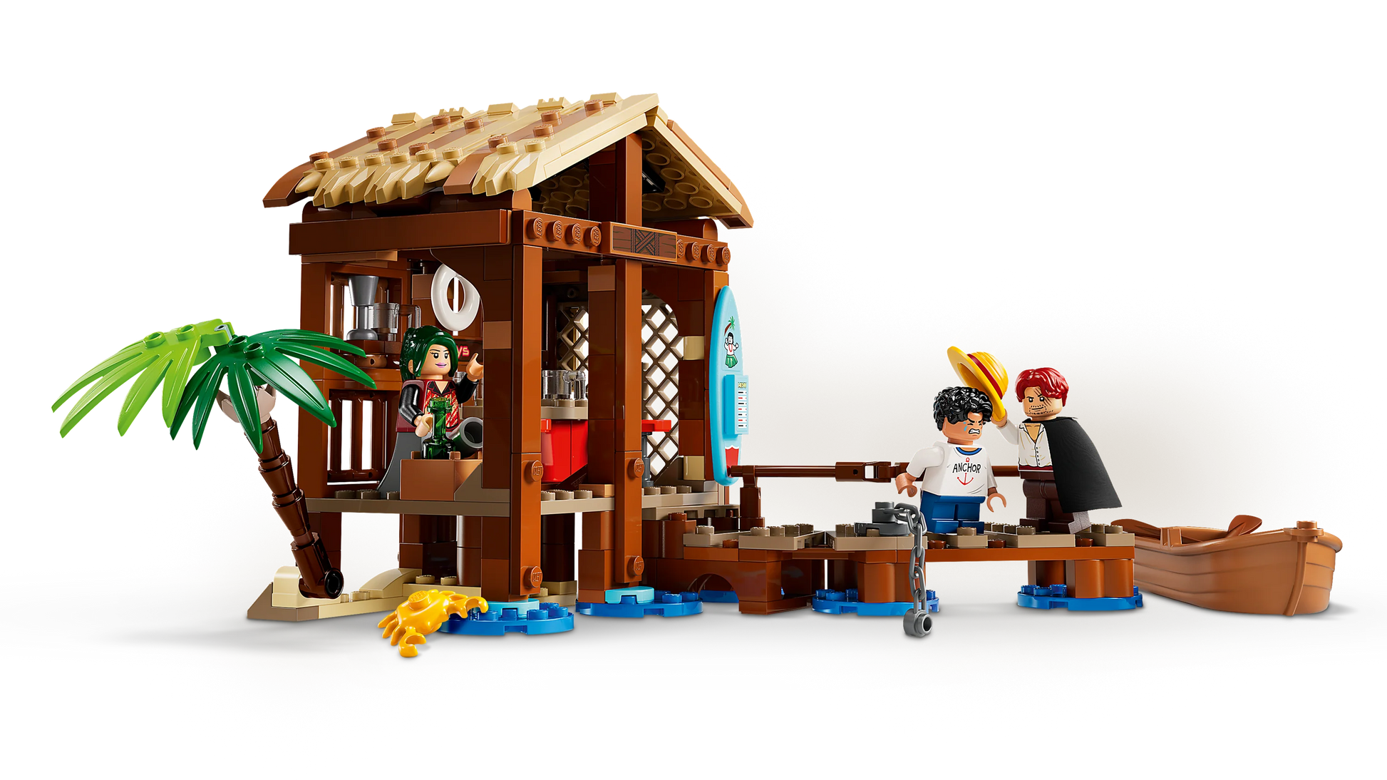 This Windmill Village Hut toy takes fans of ONE PIECE on adventures with the Straw Hat Pirates in the beachside shop and aboard the pirate boat.