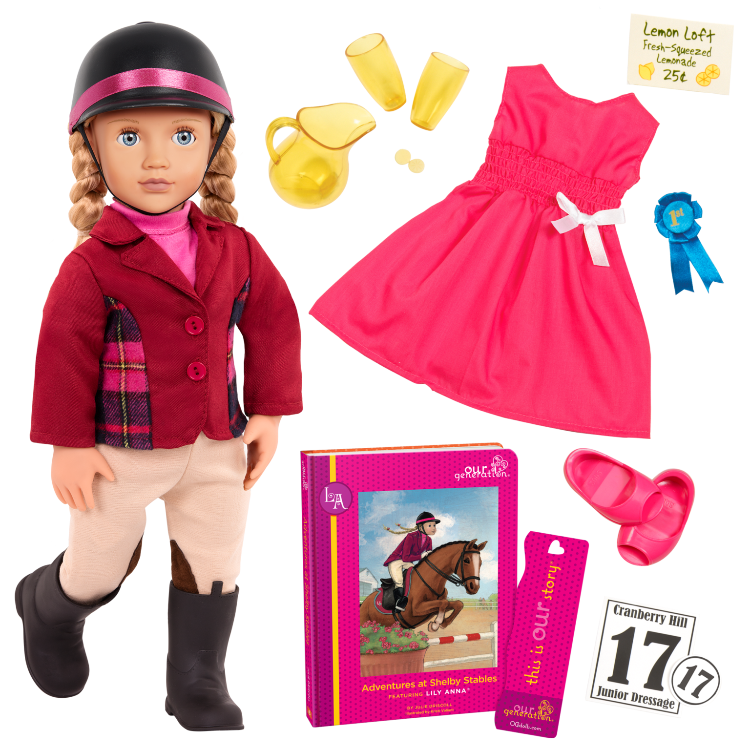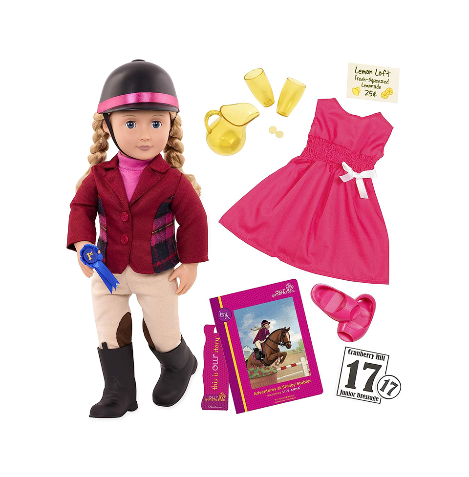 We’re saddling our own horses and blazing our own trails with Lily Anna, a Deluxe Our Generation 18-inch Doll. Whether she is winning ribbons with her favorite horse or enjoying a refreshing lemonade in the hay loft with friends, Lily Anna is ready to ride away with your imagination.