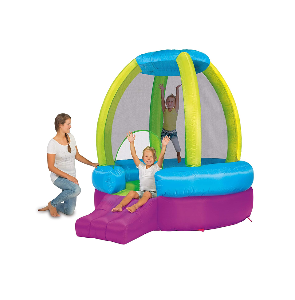 - Guaranteed fun in minutes, the Plum Rocket Bouncer comes with a quick speed blower and puncture repair kit.