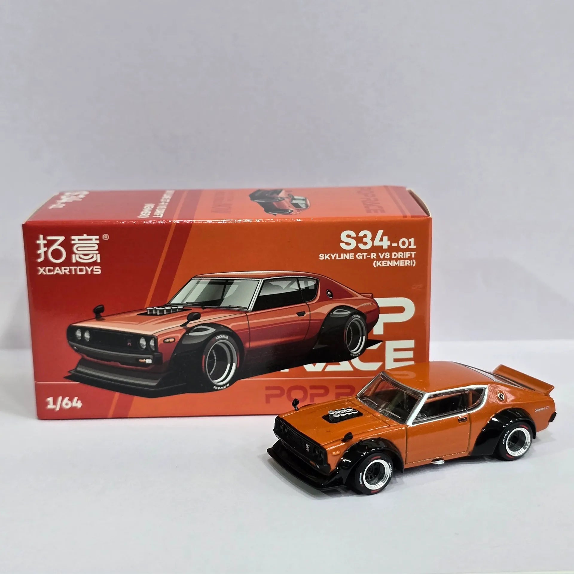POP RACE S34-01 SKYLINE GT-R V8 DRIFT (KENMERI) 1:64 SCALE DIECAST MODEL