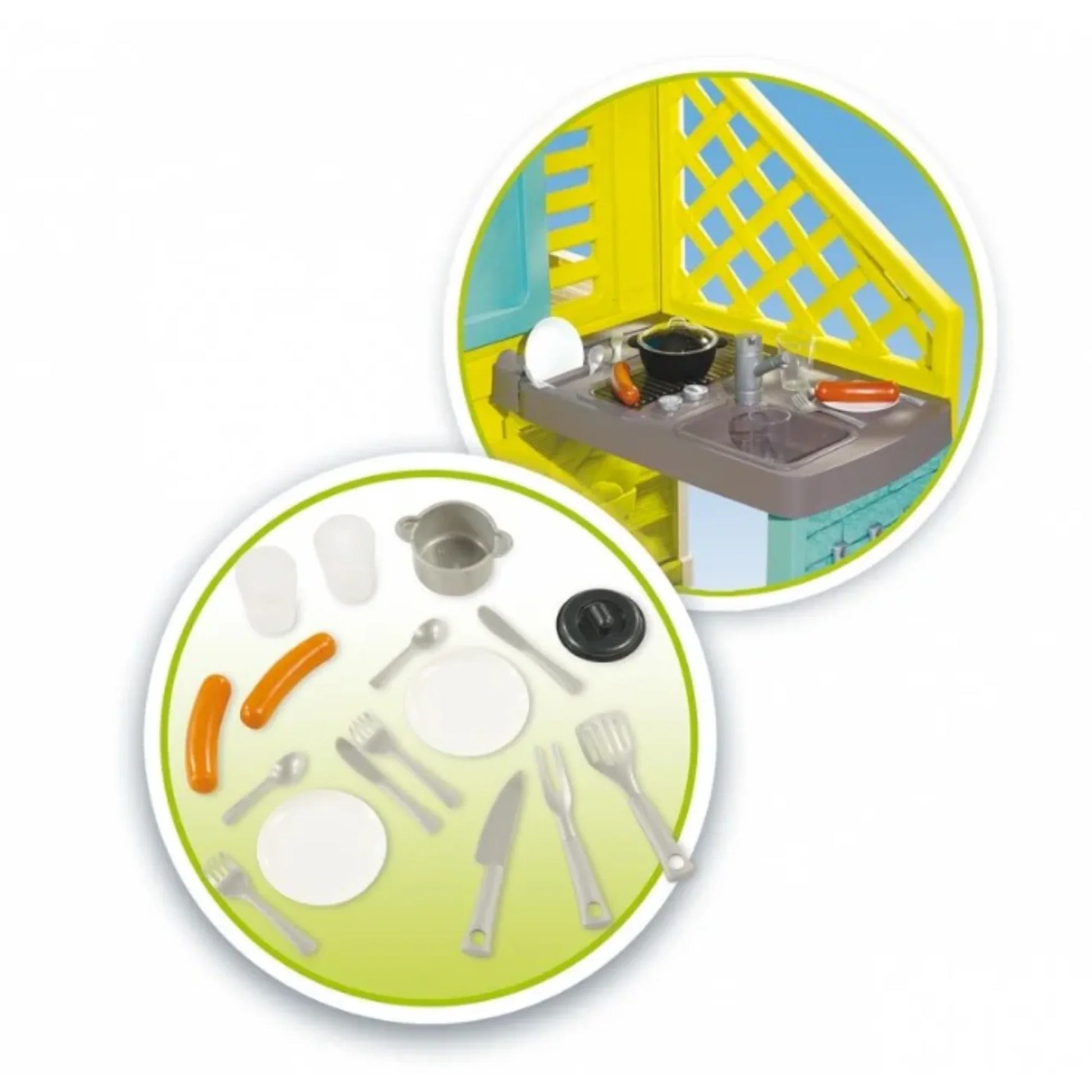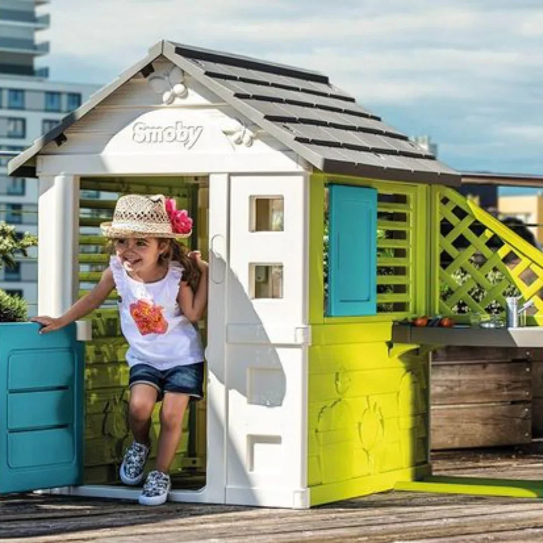 - Complete and designer, the "Playhouse + Kitchen" gives your children a large surface to play with friends!