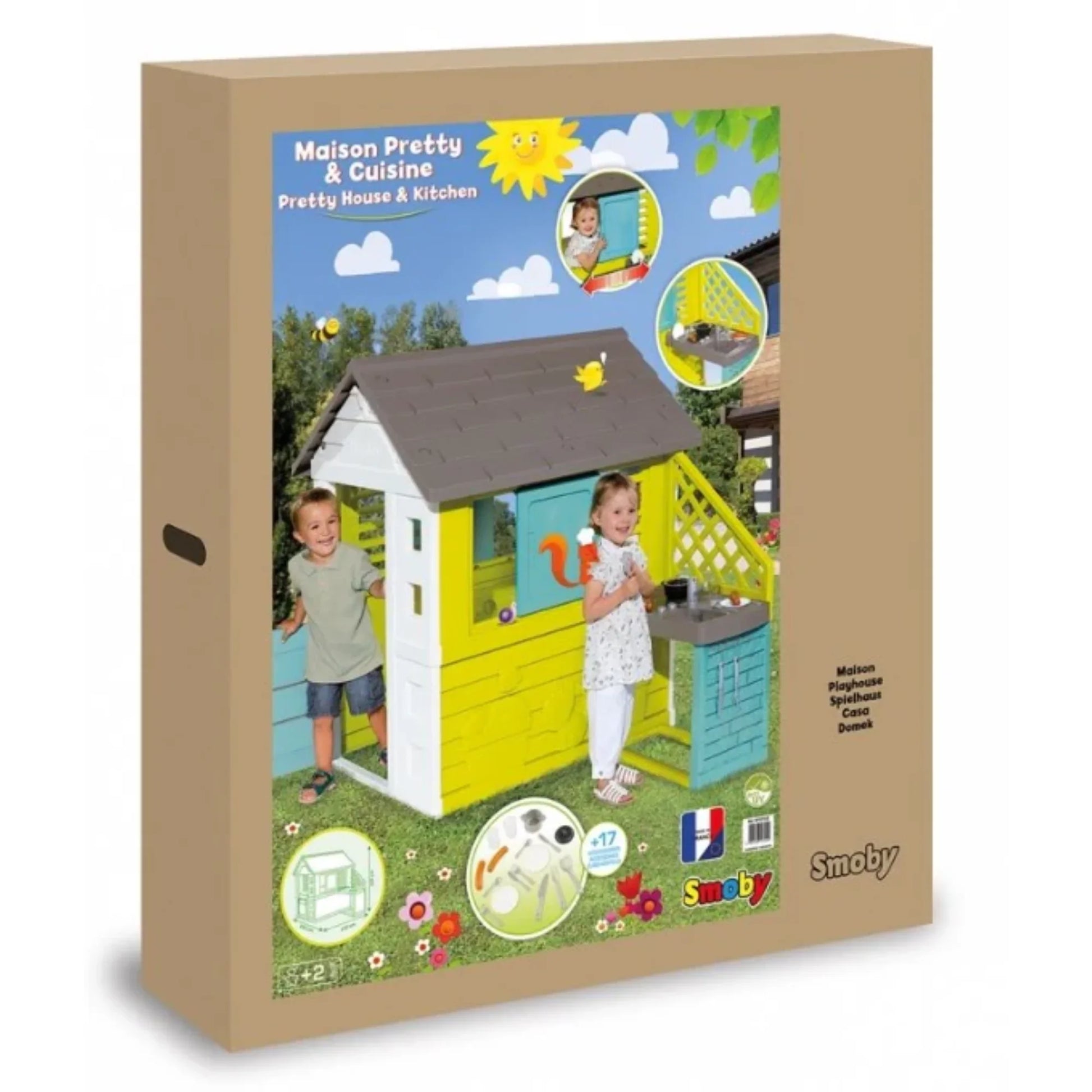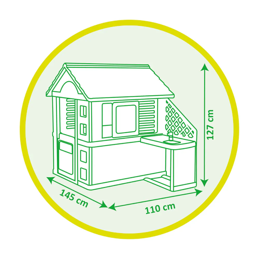 - The playhouse with its kitchen enables your kids to imagine thousand stories and not to get bored anymore!