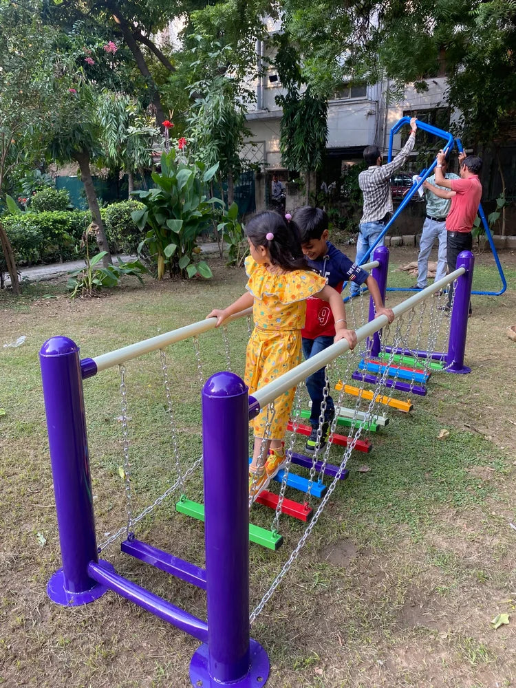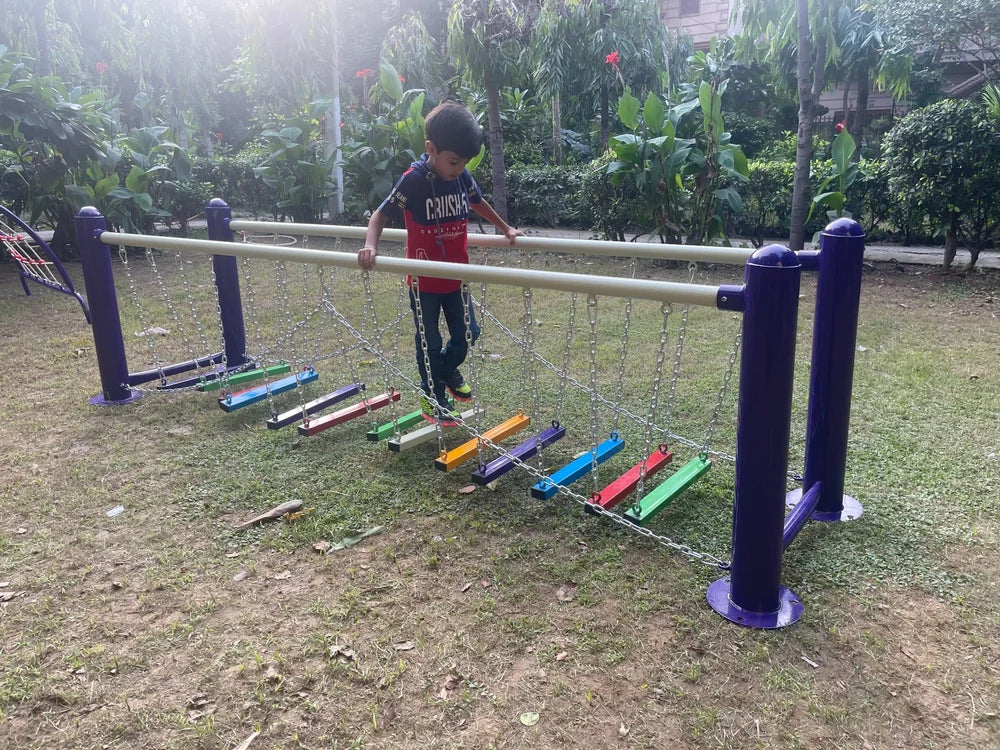 Kids will love embarking on an exciting adventure when they step onto our Metal Balancing Bridge! Perfect for climbing around or just sitting in and playing quietly. This bridge also makes a great addition to a backyard obstacle course!Kids can feel safe and secure. Crossing from one side of the bridge to the other, little ones will improve their balance skills while having fun.Adult assembly and supervision required.