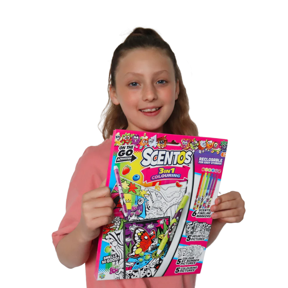If you have young kids who get bored on long car rides or need some vacation time, This Scentos On-The-Go activity and coloring set comes with Includes 15 different colouring pictures using 6 scentos scented fine line markers, 3 in 1 Coloring and Activity fun. The markers are scented with fragrances like banana, apple, blueberry, orange and strawberry and are completely safe and non-toxic for use by children. Suitable for kids aged 3 years and above, this set is available in a reclosable pack for easy storage and on the go fun.