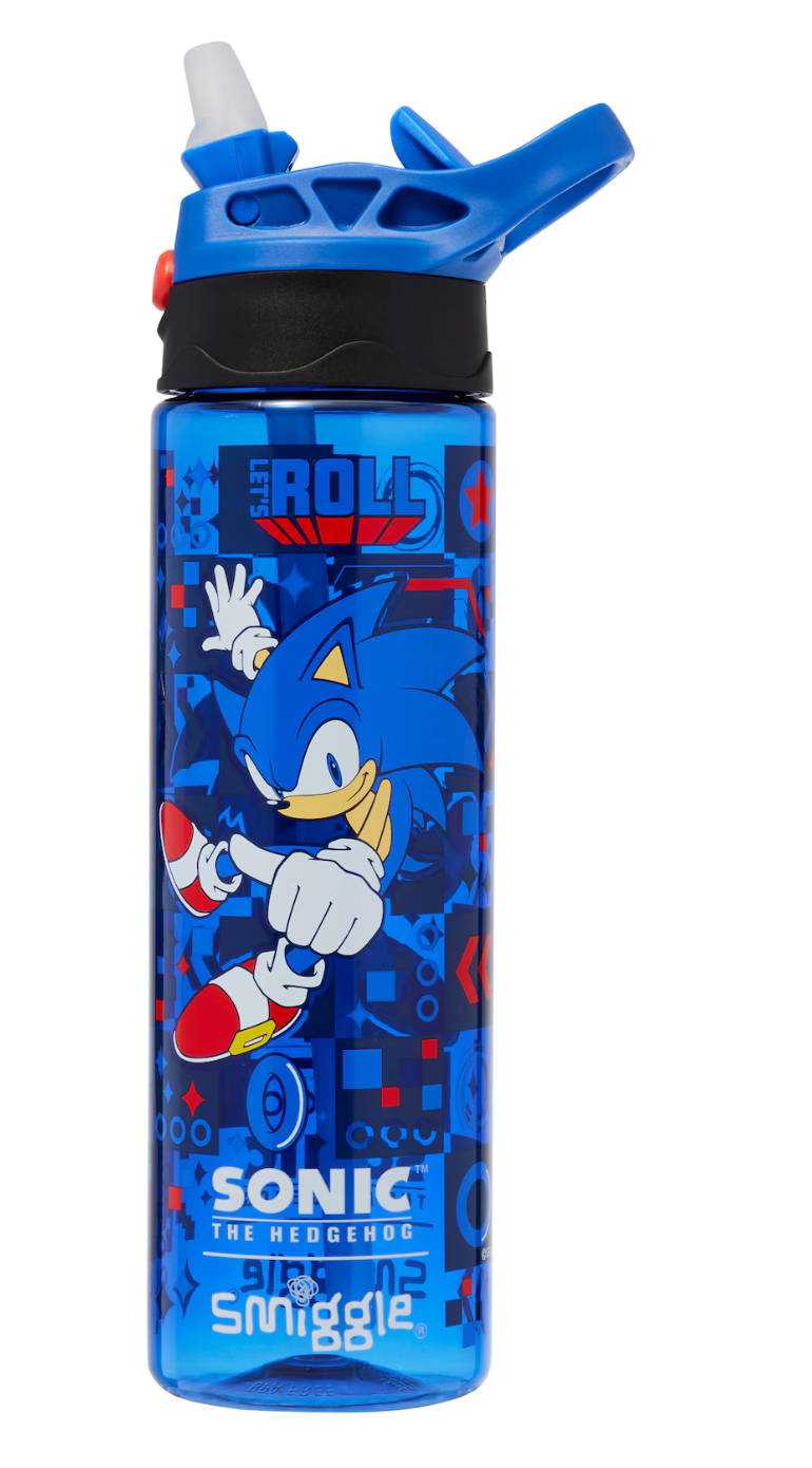 Smiggle Sonic The Hedgehog Plastic Flip Drink Bottle 650Ml