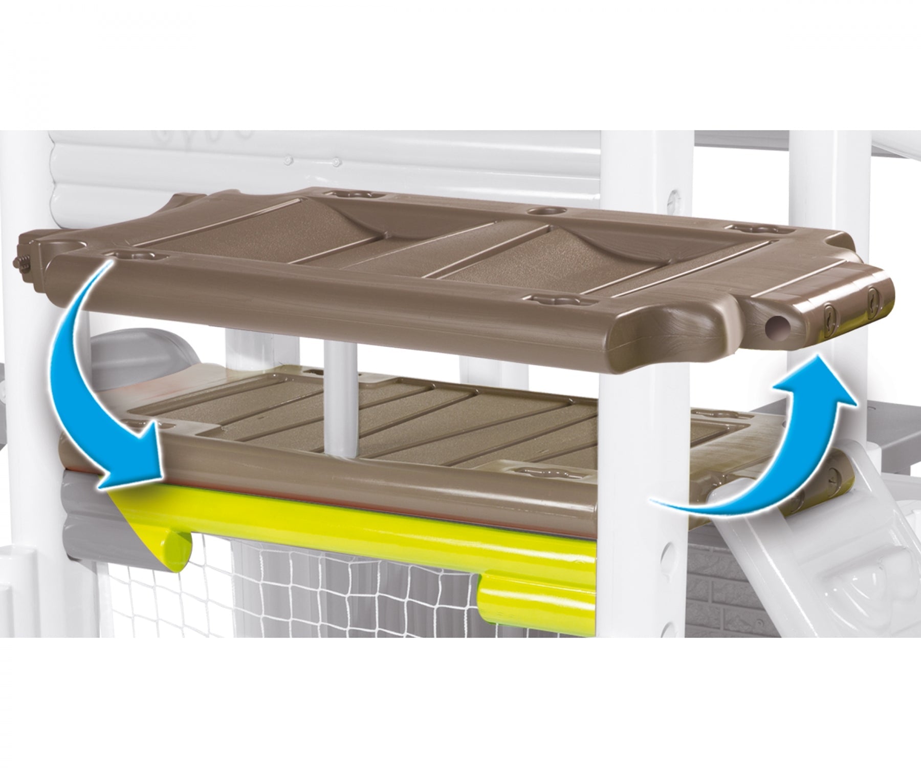 - Your kids will be the envy of the neighborhood with this innovative plastic playhouse that's an entire playground all in one, including basketball, soccer, a reversible climbing wall/ladder, a slide, and a picnic bench! Play dates will not only be fun, they'll be healthy!