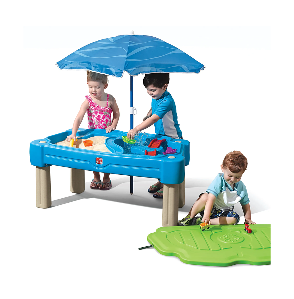Step2 Cascading Cove Sand & Water Table With Umbrella | Kids Sand & Water Play Table With Umbrella | 6-Pc Accessory Set Included, Blue