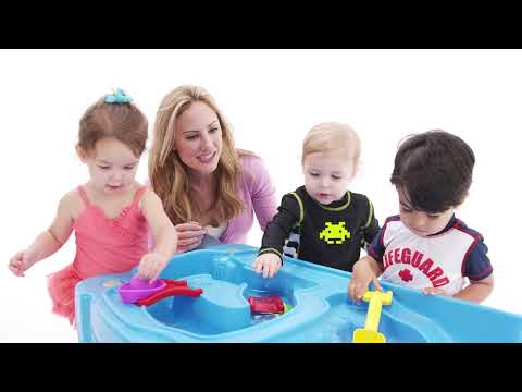 - In the box: Sand & water table base, lid, 6-piece accessory set (2 boats, 2 bridge pieces, double-sided rake and shovel, cup).