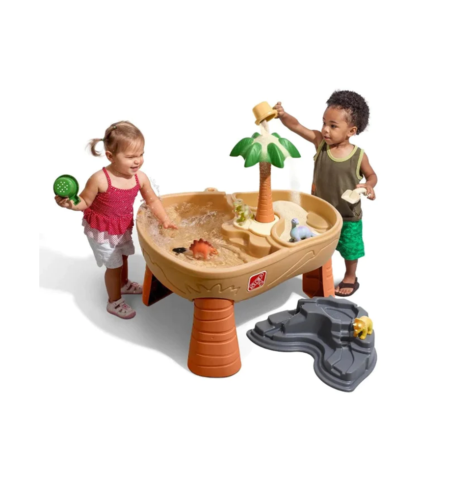 - Seaside Storytelling: Get creative with water play! Make up a story about the dinosaurs or other toys you’re playing with. Where are they from? What’s their favorite thing to do at the water table? See how silly the stories get as you build off of one another to add more details!