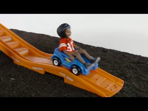 - Hot Wheels coaster car includes footrests and a high back for a safe ride – the recessed wells in the platform keep the car steady until kids are ready to roll!