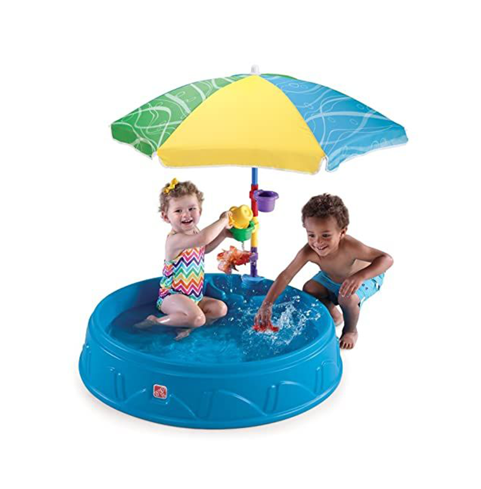 - Features two molded-in seats in the shade and the designs molded-in to the bottom of the pool provide traction.