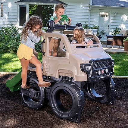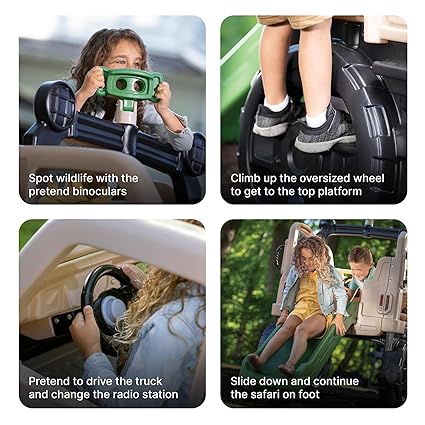- "OUTDOOR/INDOOR PLAYSET: Transform your backyard into a wild adventure, kids can drive with the steering wheel while another one uses the binoculars to find animals "