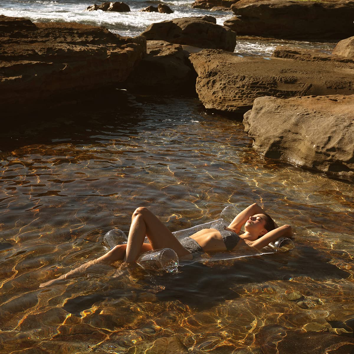 SUNNYLiFE Transparent Inflatable Bolster Hammock Float Glitter
