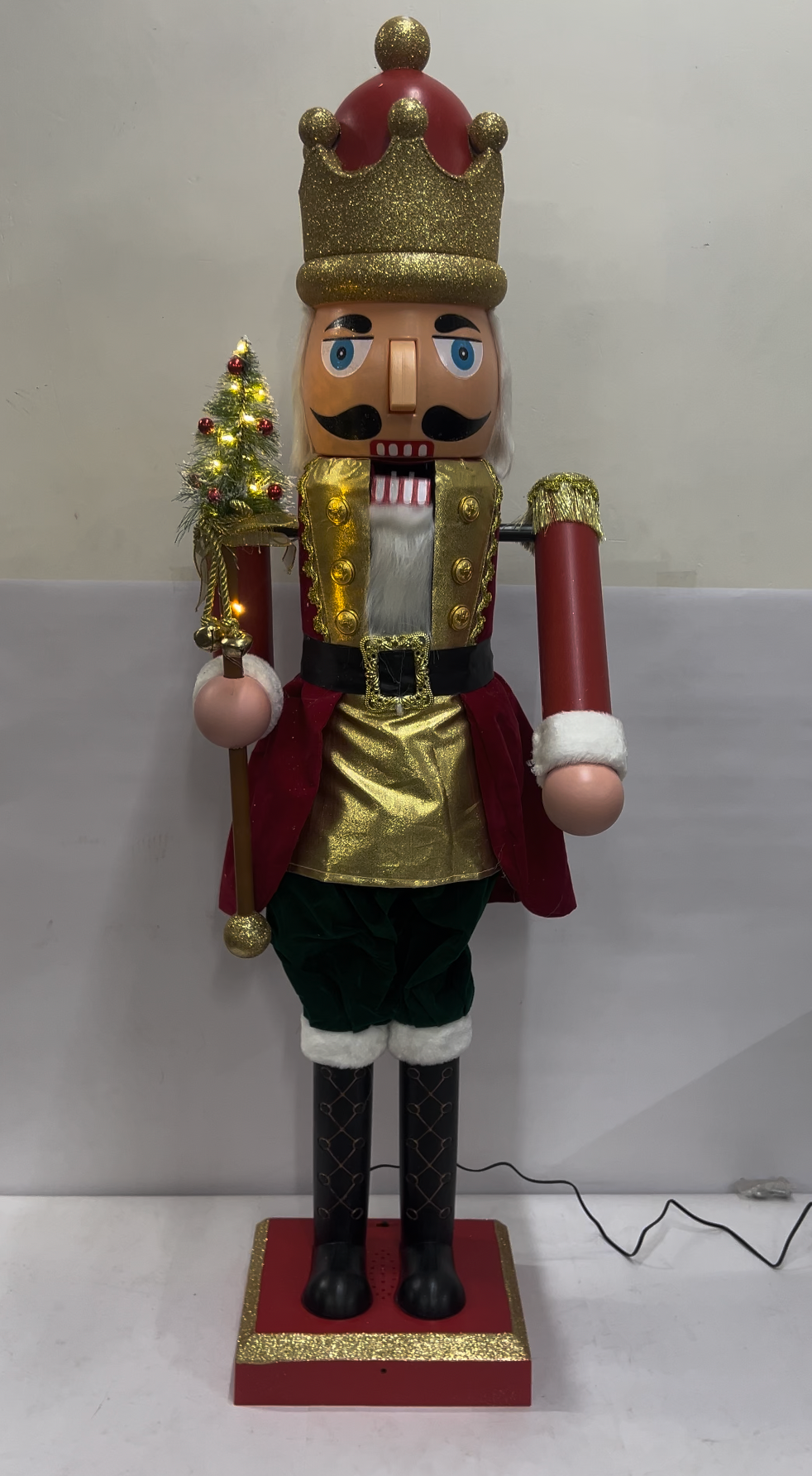 Step into the magic of Christmas with our Majestic Singing Nutcracker, a magnificent showpiece that brings music, motion, and festive grandeur to life. Dressed in rich royal attire with intricate detailing and a shimmering finish, this large animated nutcracker embodies the timeless charm of the holiday season.