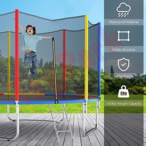 - JUMPING PAD & SPRING COVER - Trampoline jumping pad (pp material) that is wear-resistant. Safety enclosure netting, jumping mat and thick padded foam spring cover perfectly overlaps each other eliminating the gaps to ensure your safety while jumping. The trampoline will not fade when it is used outdoors (in order to keep the trampoline's new appearance when it is not in use, it is best to put it under shade.)