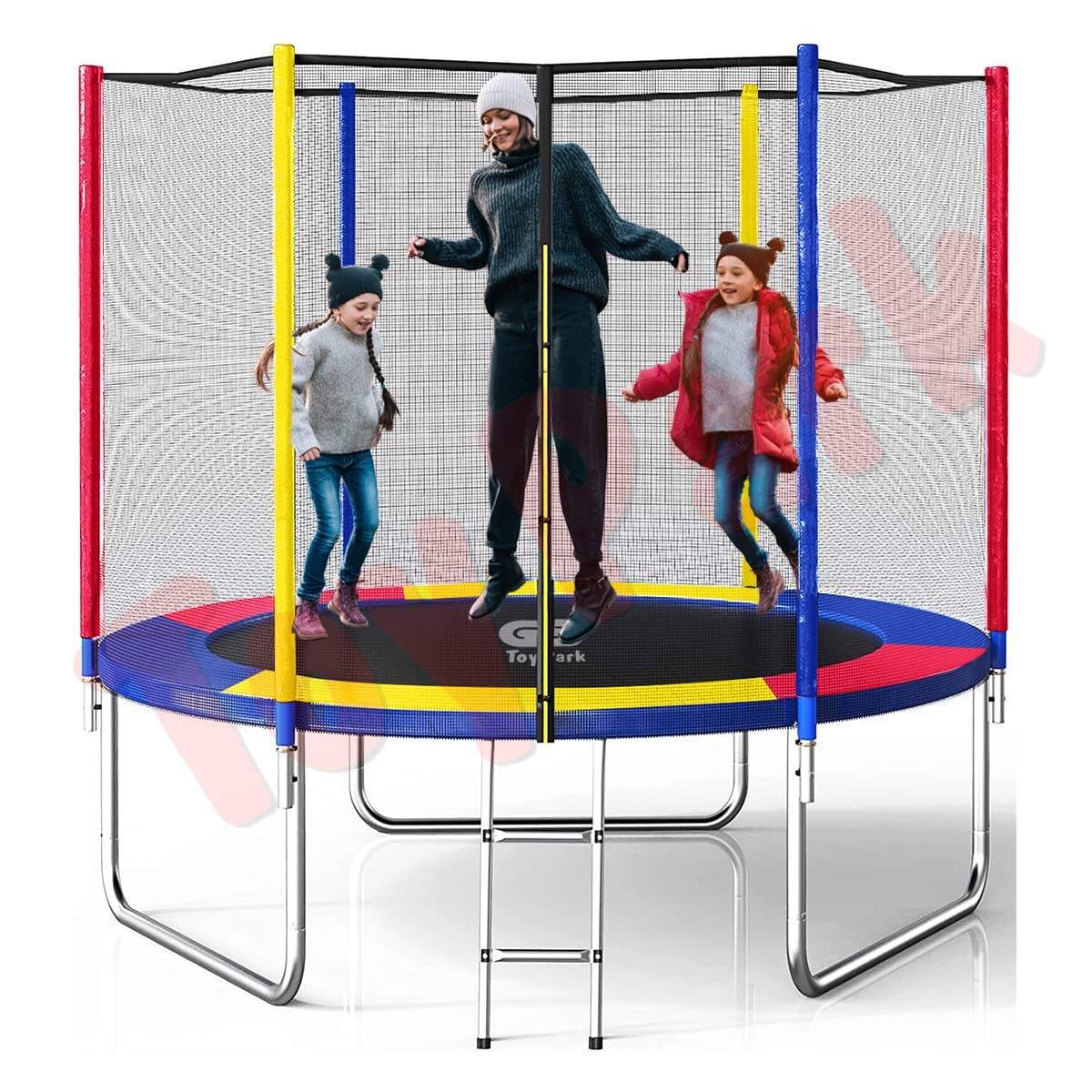 - Jumping Pad and Spring Cover - Trampoline jumping pad (pp material) that is wear-resistant. Safety enclosure netting, jumping mat and thick padded foam spring cover perfectly overlaps each other eliminating the gaps to ensure your safety while jumping. The trampoline will not fade when it is used outdoors (in order to keep the trampoline's new appearance when it is not in use, it is best to put it under shade.)