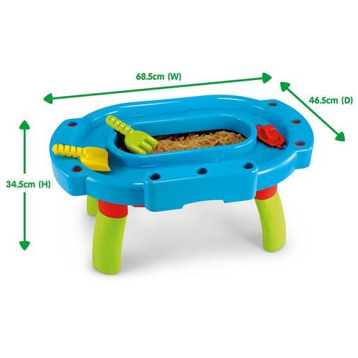 - Just the right size for your little explorers and adventurers, this sturdy sand and water table can be either used on the floor or raised up on its legs.