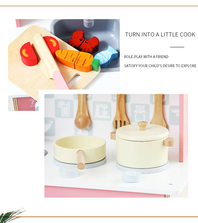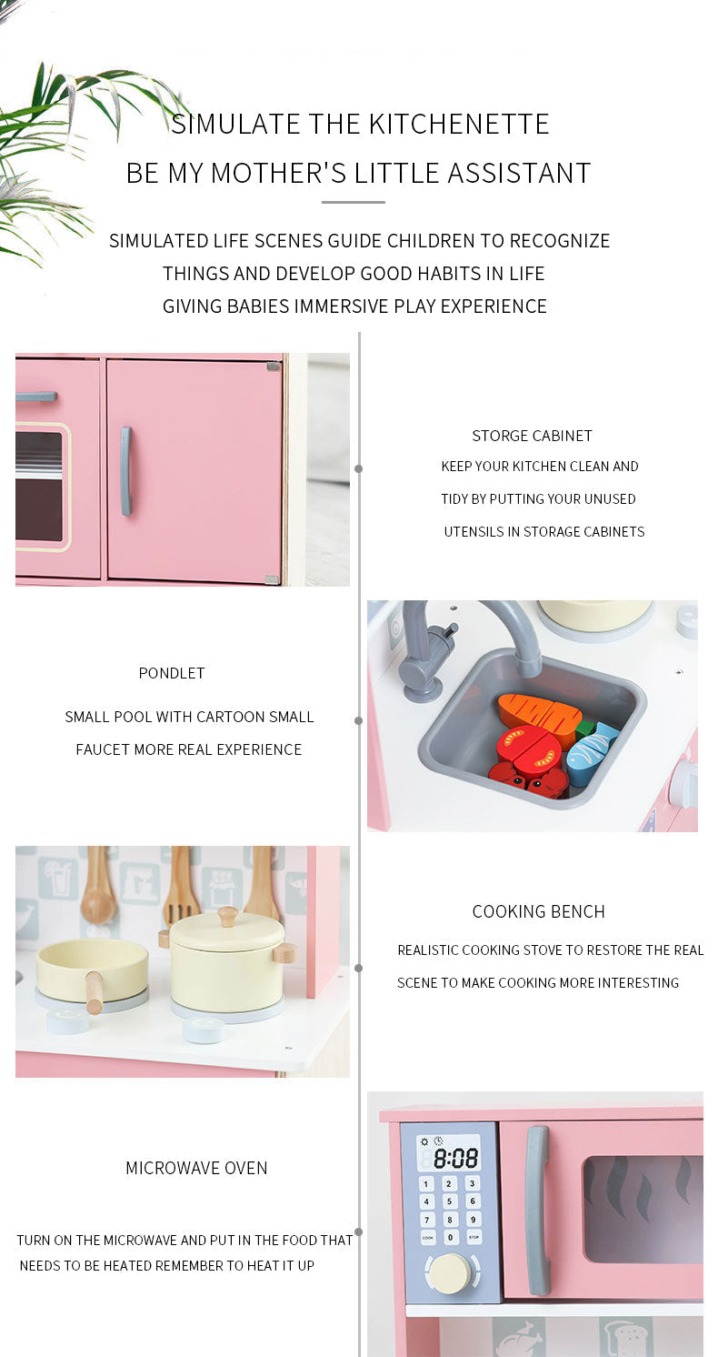 - Pretend Play Kitchen Playset made of solid wood, sturdy and durable construction. High-quality Craftsmanship, the surface is smooth without burr, easy to clean. When your kdis grow up, you can gift it back to their younger siblings or the next generation.