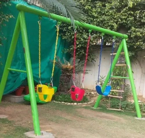 Wider frame and more robust, solid and sturdy overall.Swing seat included is of great quality and the metal ropes coated with plastic are safe for children’s hands.One toddler seat is included.Maximum weight allowed is 70kg.The product needs to be grouted.