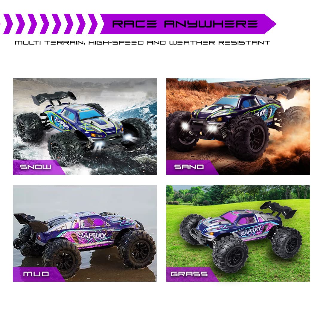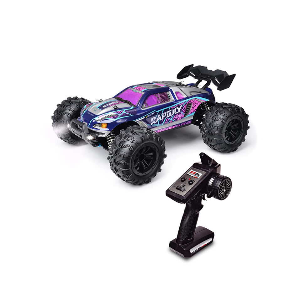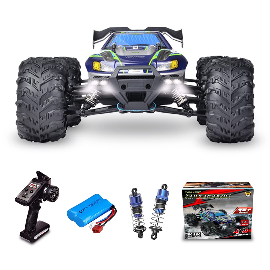 - The RC car is equipped with a high-performance 4-wheel drive system, powerful carbon brushed motor, and lithium-ion battery, allowing for maximum speed of 45 km/h, responsive and stable steering, smooth handling, and great off-road capabilities. Suitable for professional level hobbyists, ages 8 and up.