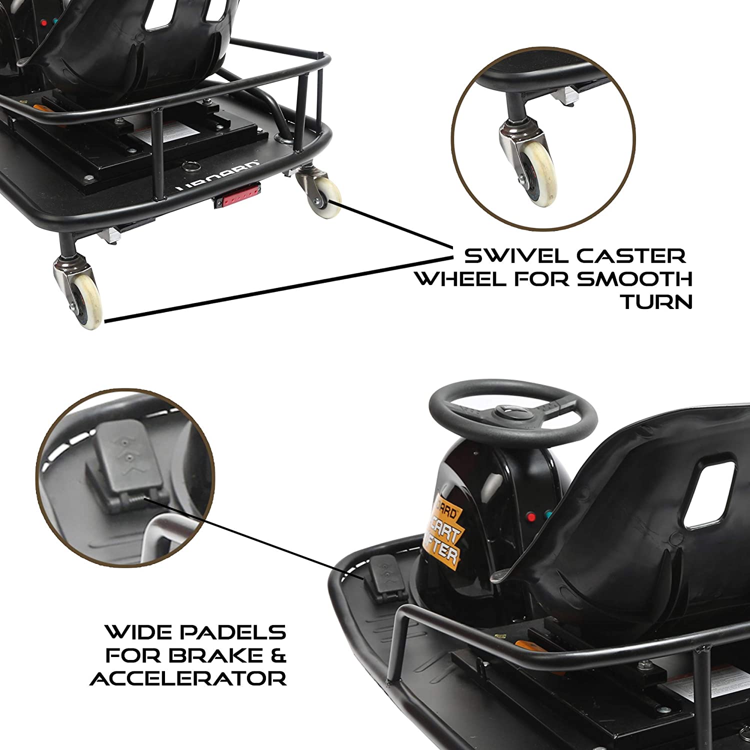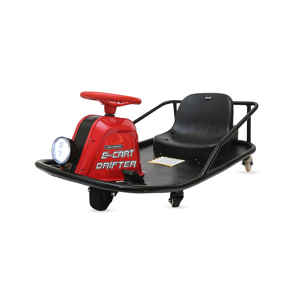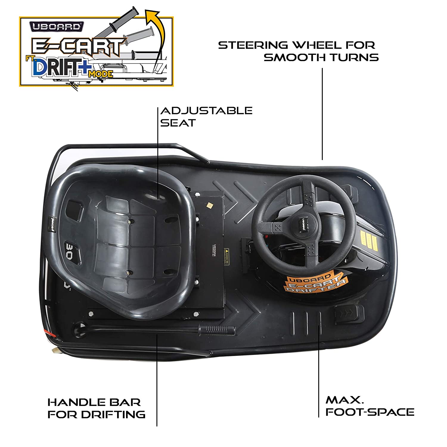 Drive like a go cart or lift the drift bar to kick into E-cart drifter mode. The E-cart drifter comes equipped with a drift handle to driver to vary the rear caster angle so you can drive and drift in any direction