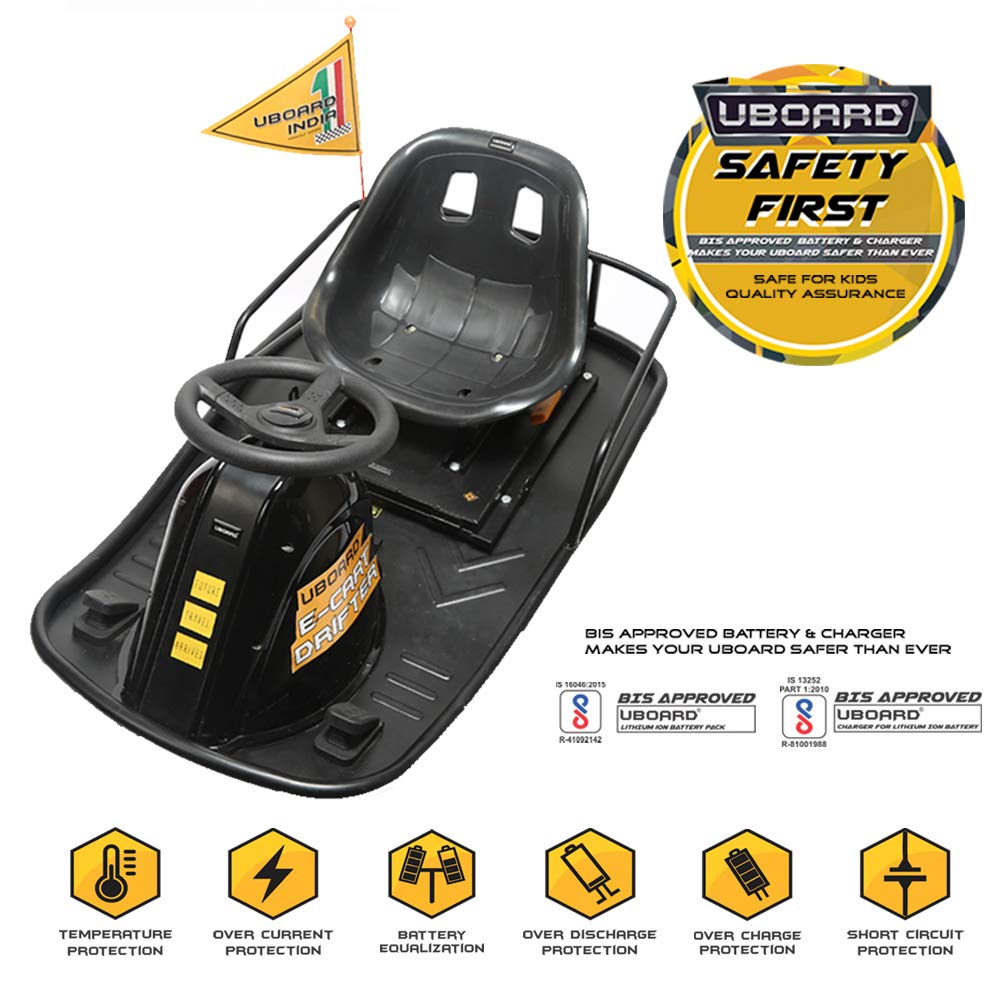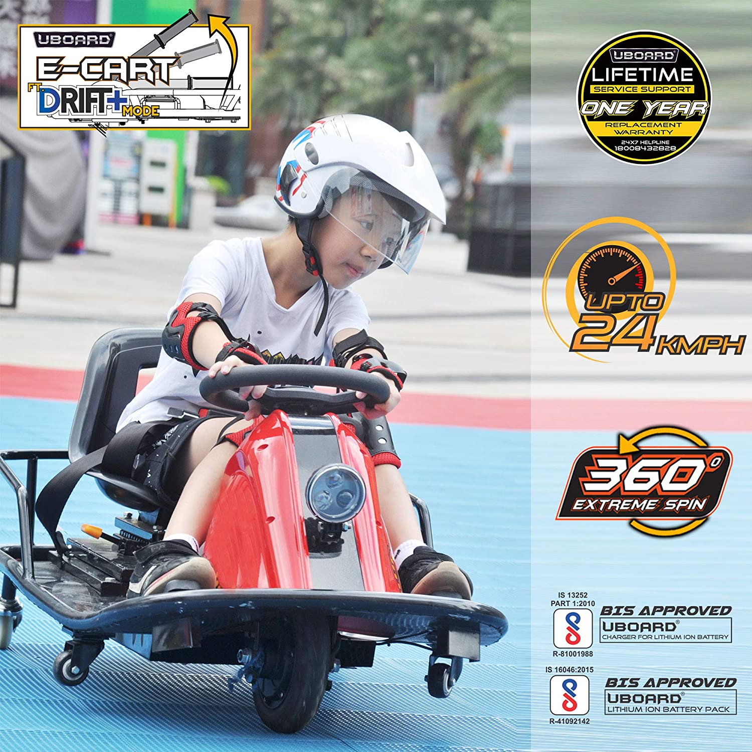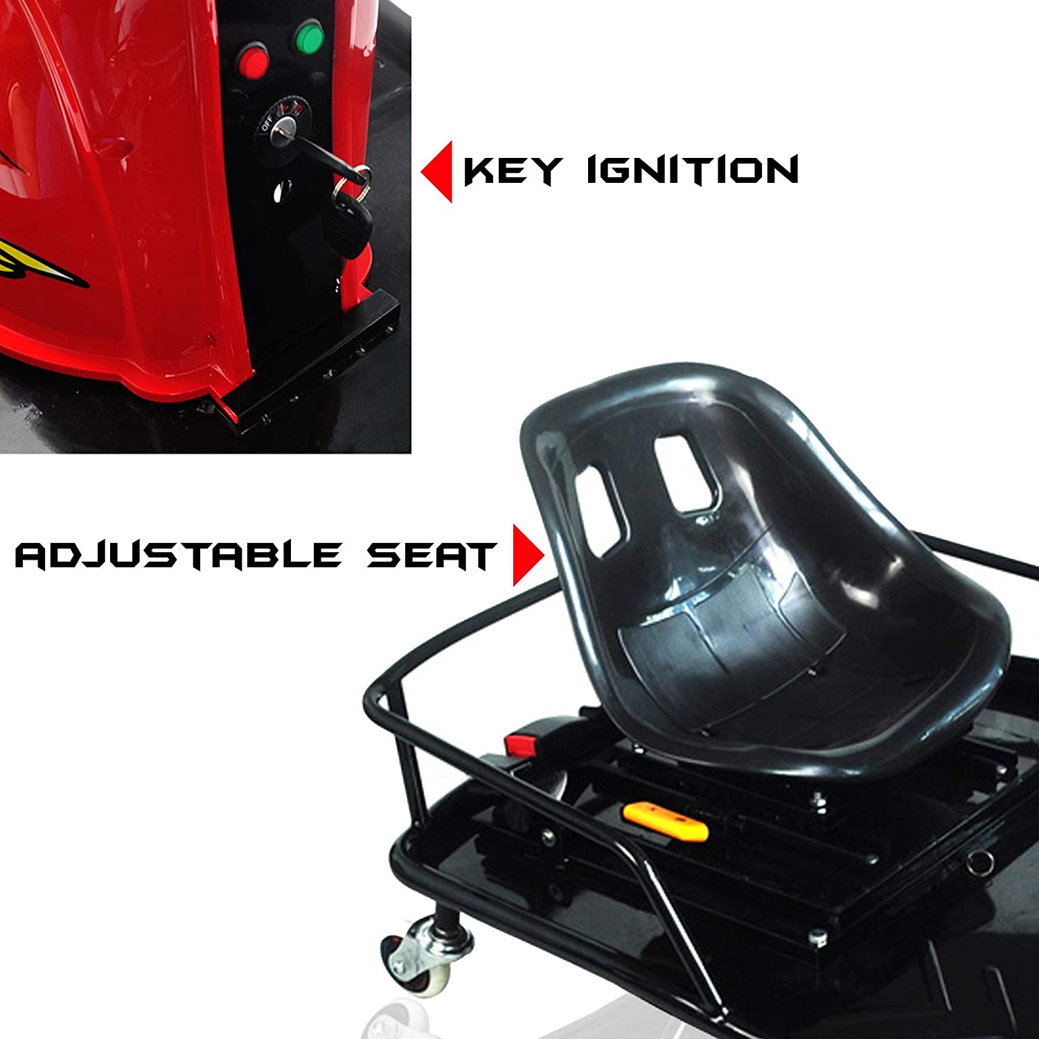 Drive like a go cart or lift the drift bar to kick into E-cart drifter mode. The E-cart drifter comes equipped with a drift handle to driver to vary the rear caster angle so you can drive and drift in any direction