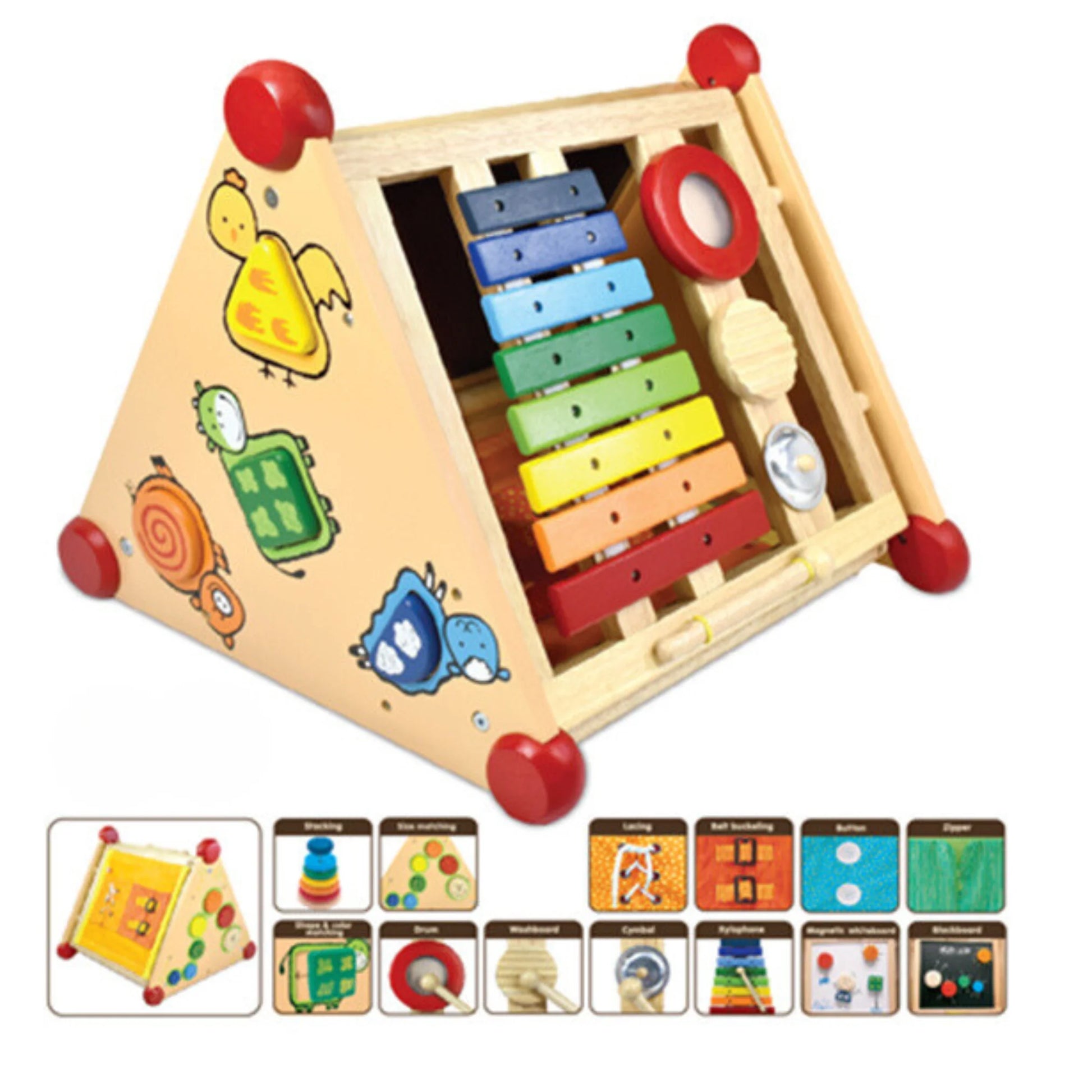 Made from high-quality, eco-friendly rubberwood, the Act It All Activity Centre is durable and safe, designed with non-toxic paints. It's a fantastic addition to any playroom, encouraging independent play and creativity.