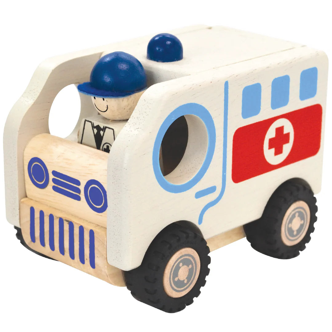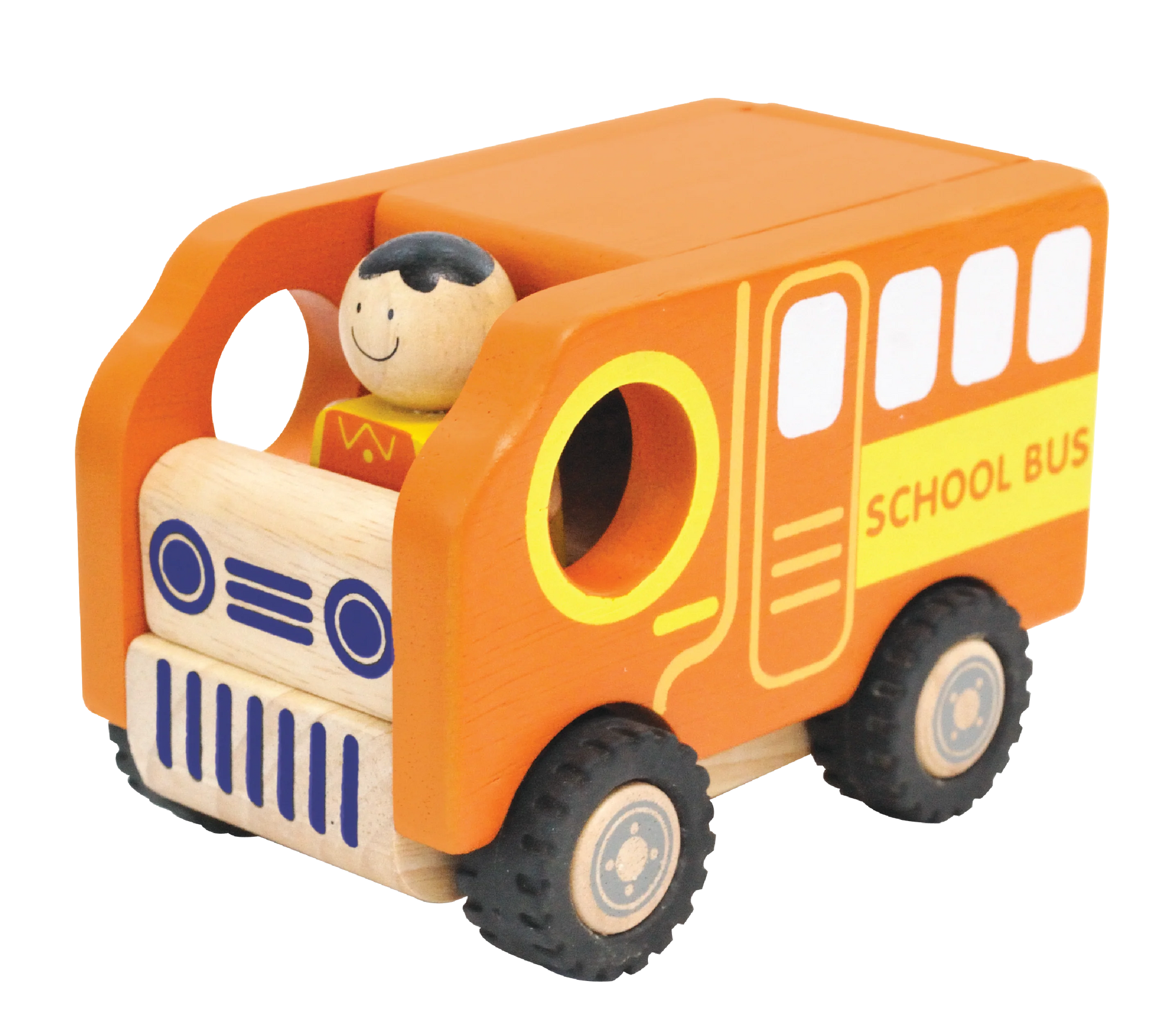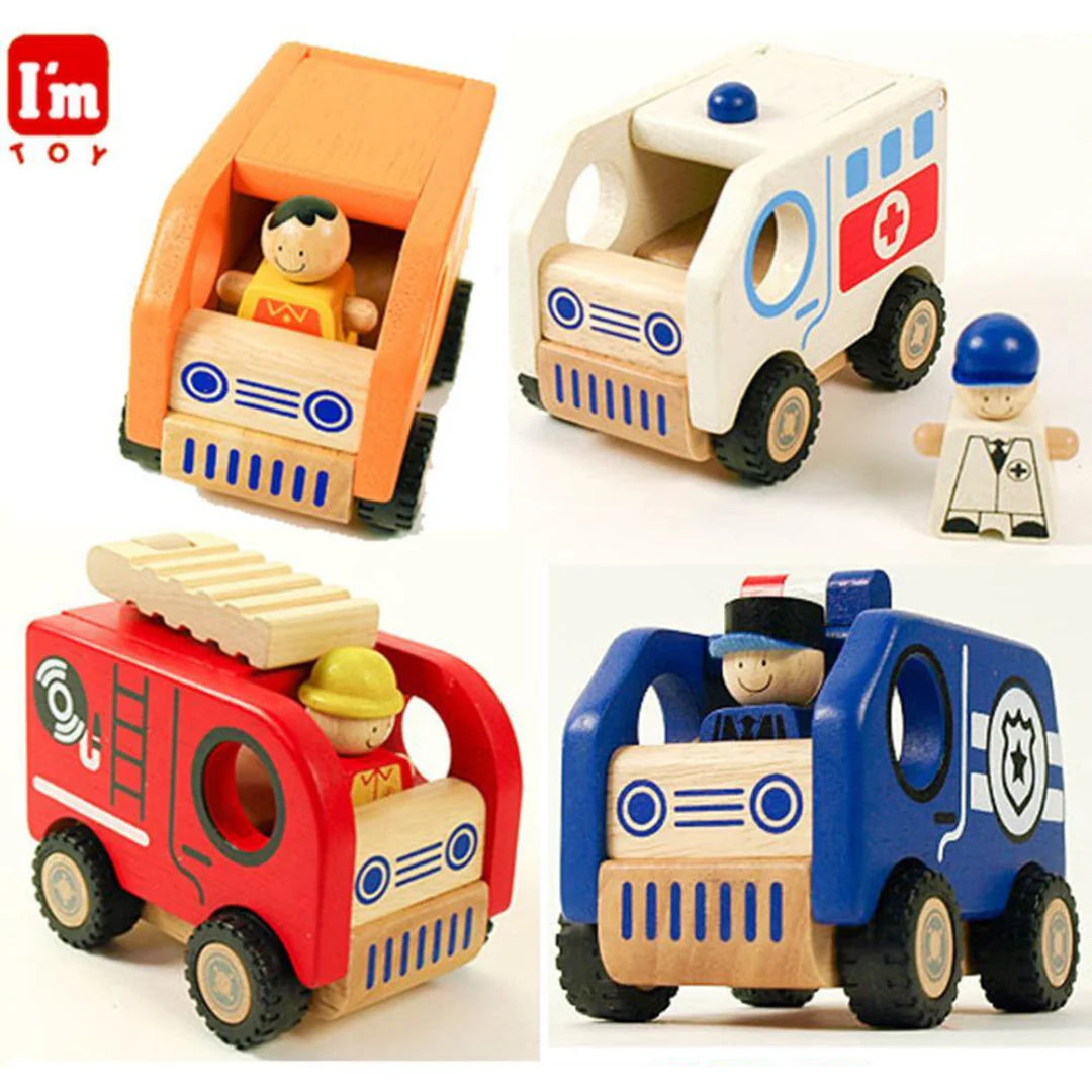 Wooden Public Vehicles set of 4 (Fire Engine, Ambulance, Police Car, School Bus)