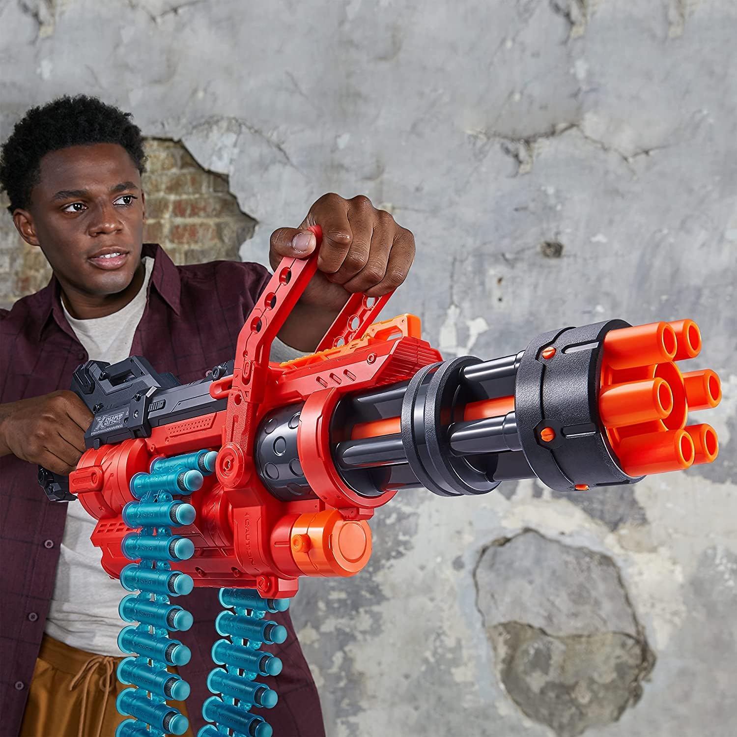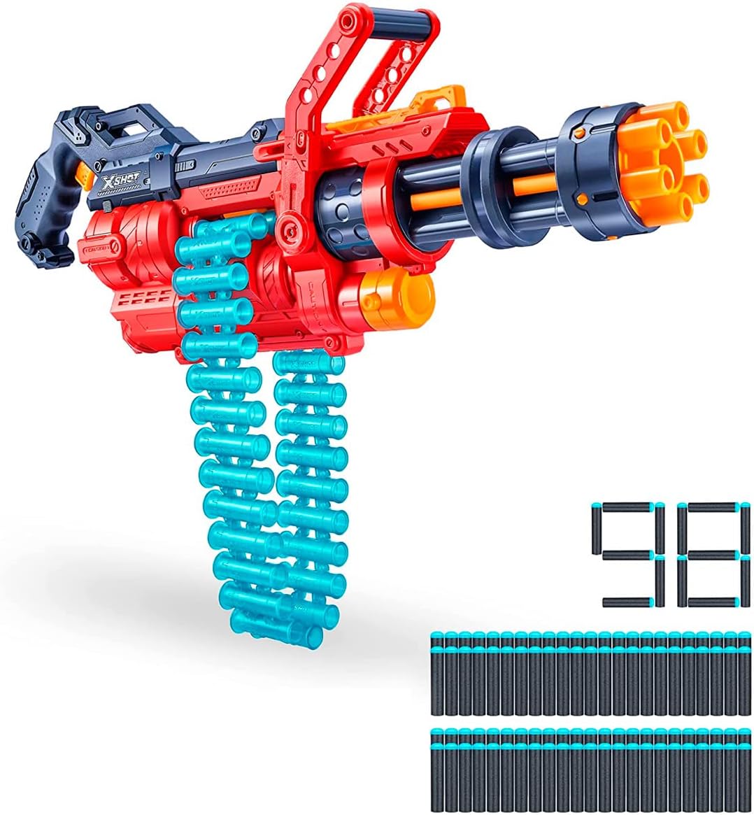 - Belt Powered Gun: The X-Shot Excel Omega has a 30-dart capacity strap that automatically feeds and rotates through the launcher.